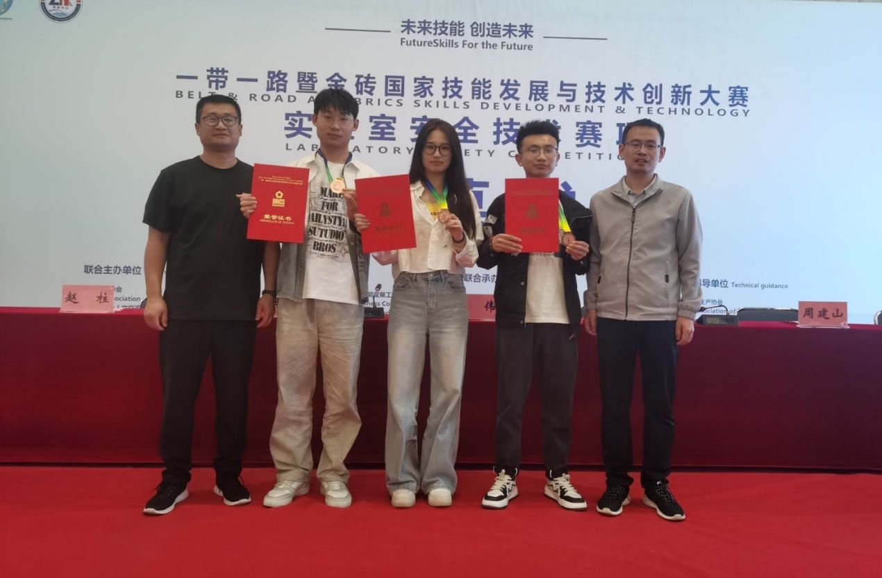5月21日,第七届“一带一路暨金砖国家技能发展与技能创新大赛”实验室安全技术赛项高职组全国决赛在河北秦皇岛市举行,由我院石油和化学工程系学生韦江伟、白治宽、高静组成的代表队,在指导教师朱玉高、宋文、李哲、程俊的指导下,取得了该赛项的三等奖。