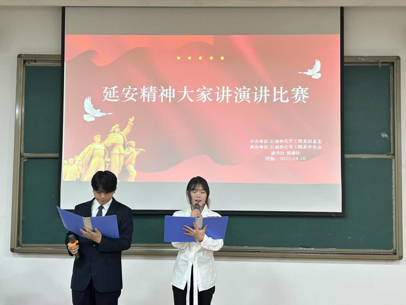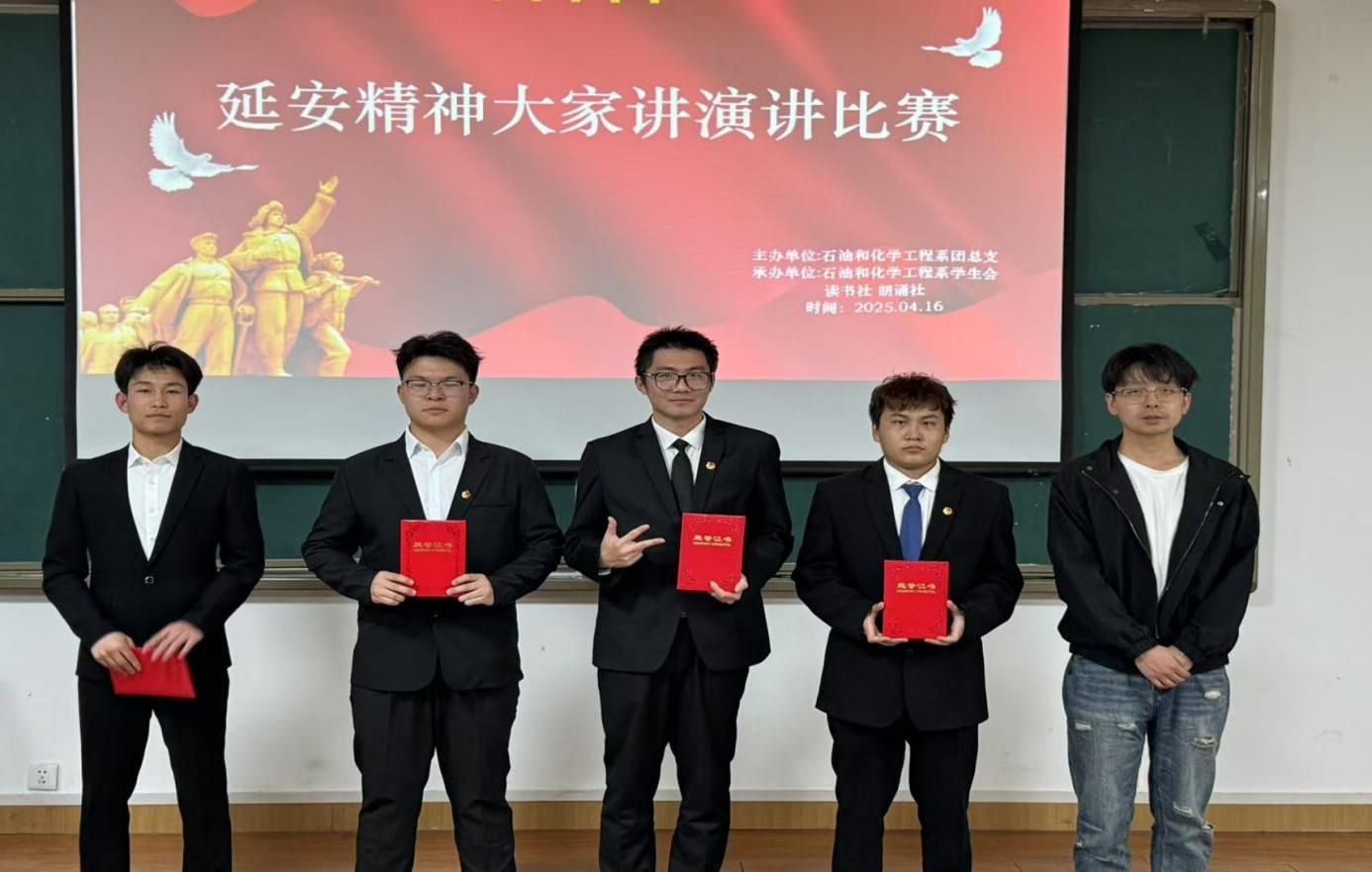 2025年4月16日19:30,石油和化学工程系“延安精神大家讲”演讲比赛决赛在延安职业技术学院第四阶梯教室成功举办。本次比赛旨在传承红色基因,弘扬延安精神,吸引了众多师生的关注与参与。