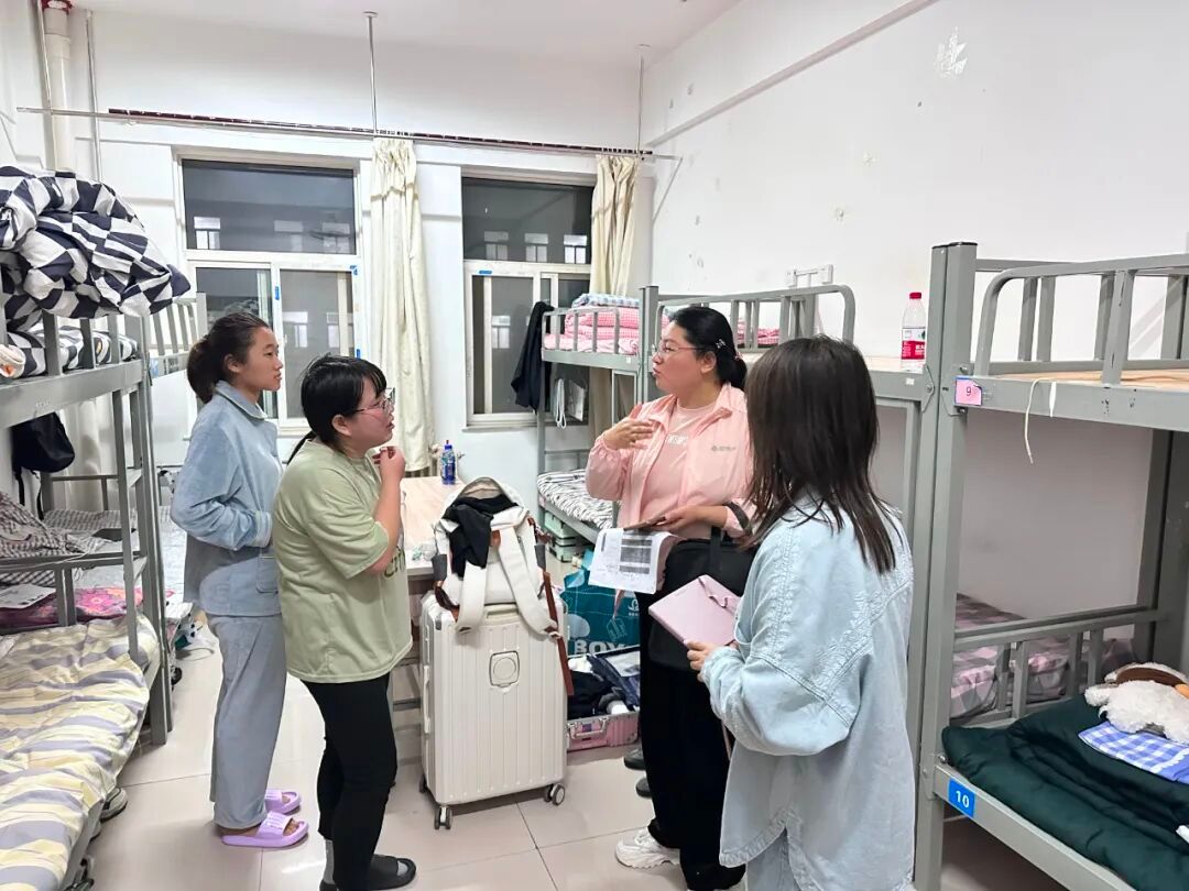 9月6日晚,石油和化学工程系学工人员积极行动,深入男女生公寓,对2025级三年制新生宿舍展开了全面晚宿检查工作,以营造安全惬意的住宿空间为基础,结合针对性谈心谈话,帮助新生迅速适应大学集体生活,顺利融入校园日常。