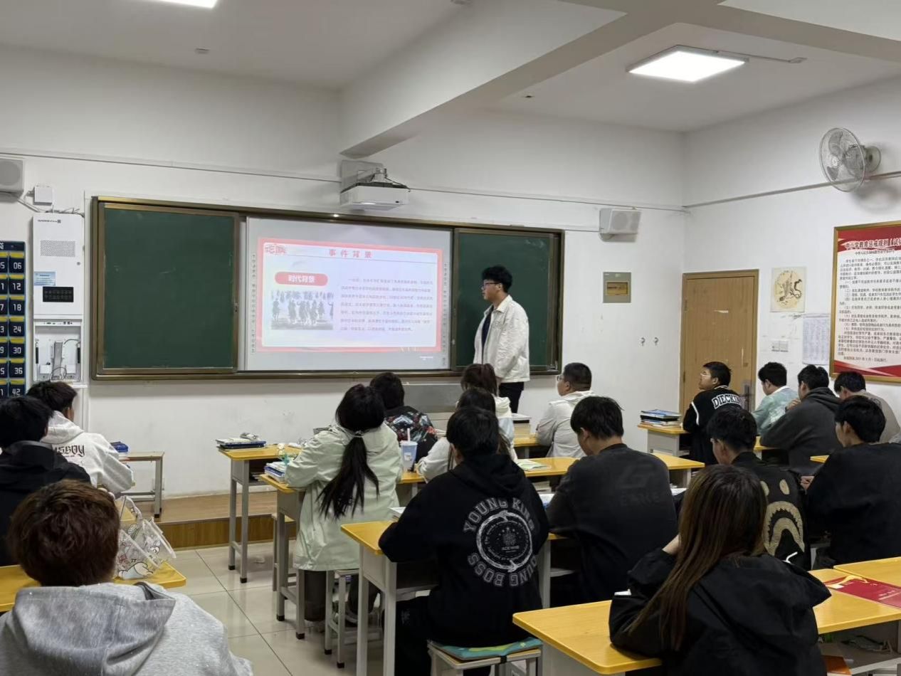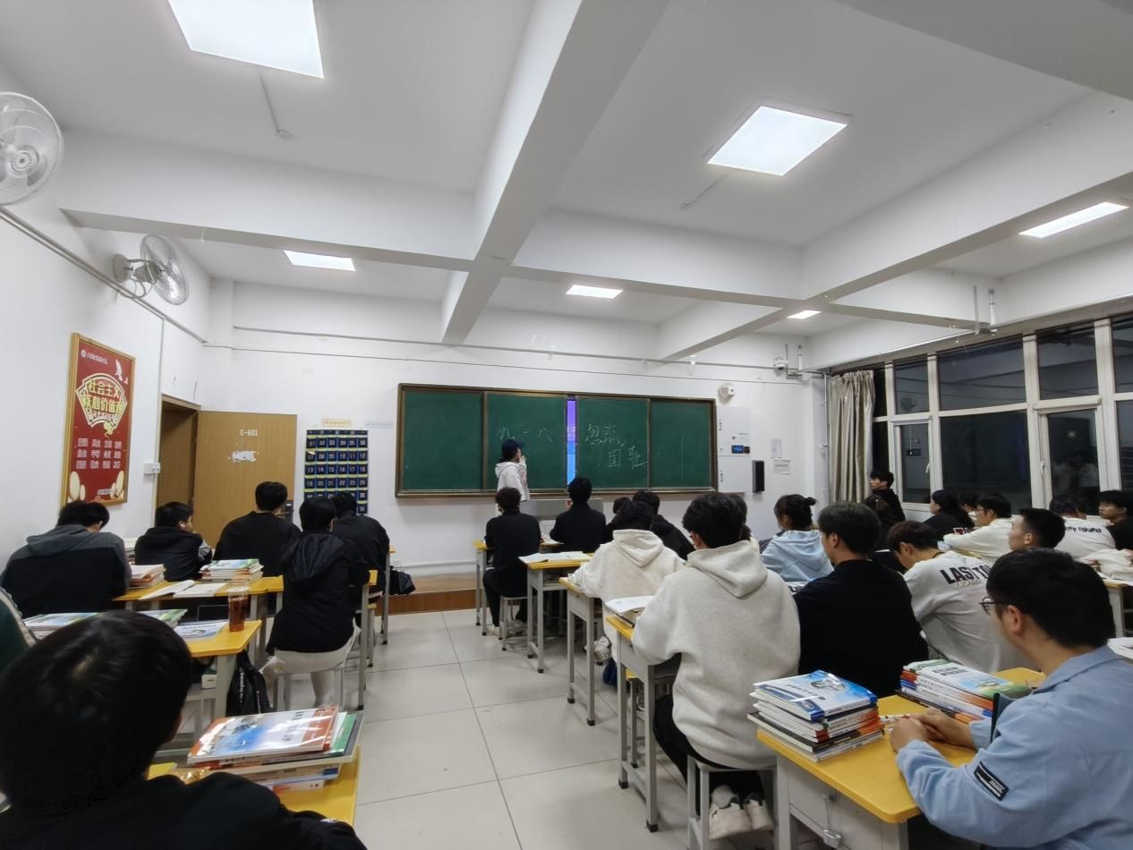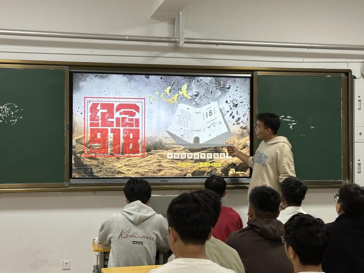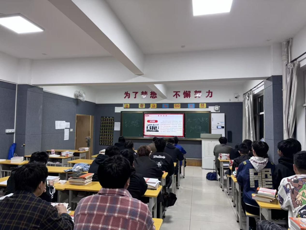 班会上,各班以 “历史溯源” 为切入点,通过播放历史纪录片片段、展示珍贵史料图片、辅导员深情讲述关键历史节点事件等形式, 让学生深入了解了1931年 “九一八事变” 的爆发背景、经过及深远影响,深刻感受到了当时中国人民所遭受的深重苦难和中国共产党人带领人民坚决抗争的英勇事迹。