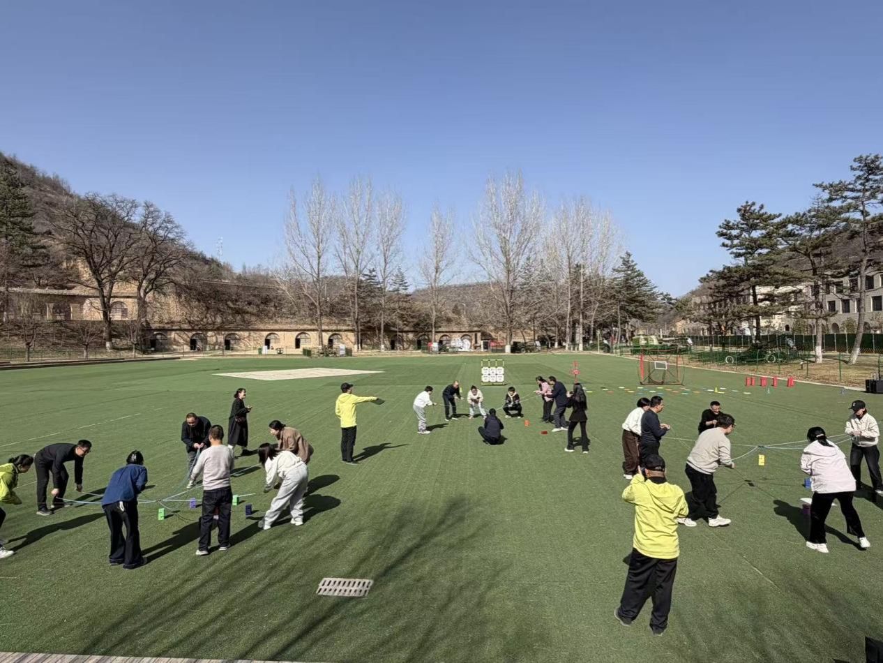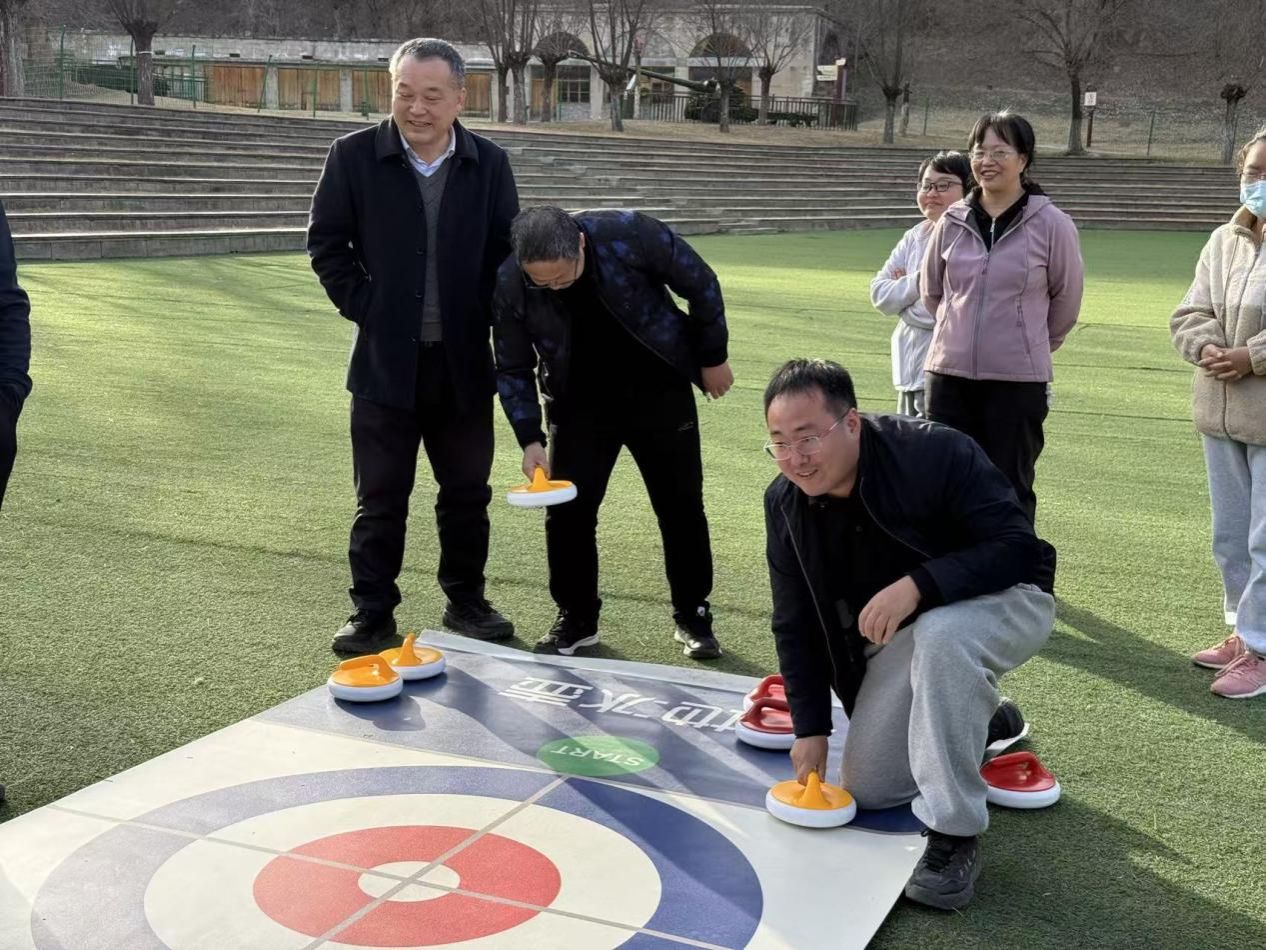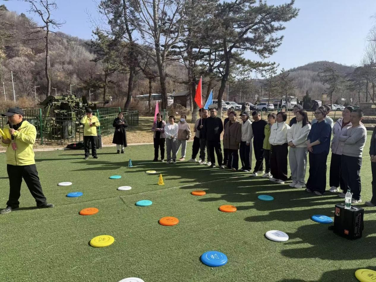 活动中,老师们先分组完成团队组建,设计旗帜、拟定口号并进行风采展示,尽显昂扬向上的精神风貌。随后,合力建塔、旱地冰壶、飞盘嘉年华等拓展项目依次开展,各环节兼具趣味性与协作性,教师们凝心聚力、默契配合、奋勇争先,在比拼互动中增进情谊,充分展现出团队拼搏、互帮互助的优良作风。